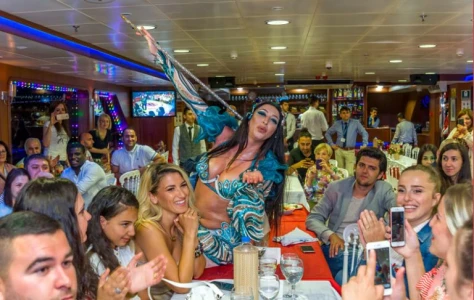Насолоджуйтесь талантом традиційних танцюристів, співаків і танцівниць живота під час вечірньої екскурсії на круїзі з вечерею і шоу в Стамбулі. Розслабтеся в комфорті на диванах з усіх боків, у приміщенні та на відкритому повітрі. Їжте та пийте на терасі, обідаючи в Стамбулі за великим столом на нижній палубі або підніміться на верхню палубу, щоб насолодитися панорамним видом на море. Насолоджуйтесь талантом традиційних танцюристів, співаків і танцівниць живота…