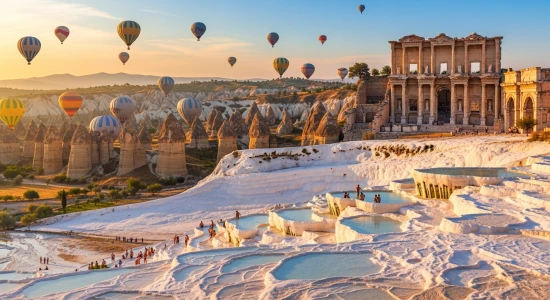 探索帕穆卡莱的白色梯田和古城希拉波利斯。游览结束后,前往机场,搭乘航班返回伊斯坦布尔。抵达后,转机至您的酒店或机场。